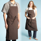 100% organic cotton apron for the professional kitchen, the wood workshop, and the crafts atelier, 100% biodegradable. Made in-house at Rawganique Atelier for true sweatshop-free purity, our organic cotton twill canvas full chef's aprons are as pure as can be. Natural (dye-free) & organic eco dyed Brown. Chemical-free. Organic cotton thread on 2023 and later productions.
