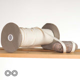 3/8" Organic Cotton Edging Tape. 50 meters roll. Great for accessories, trims, pet leashes, shoulder straps, towel hooks, and drawstrings. Sweatshop-free. Chemical-free. Unbleached & undyed. Made in-house for true purity.