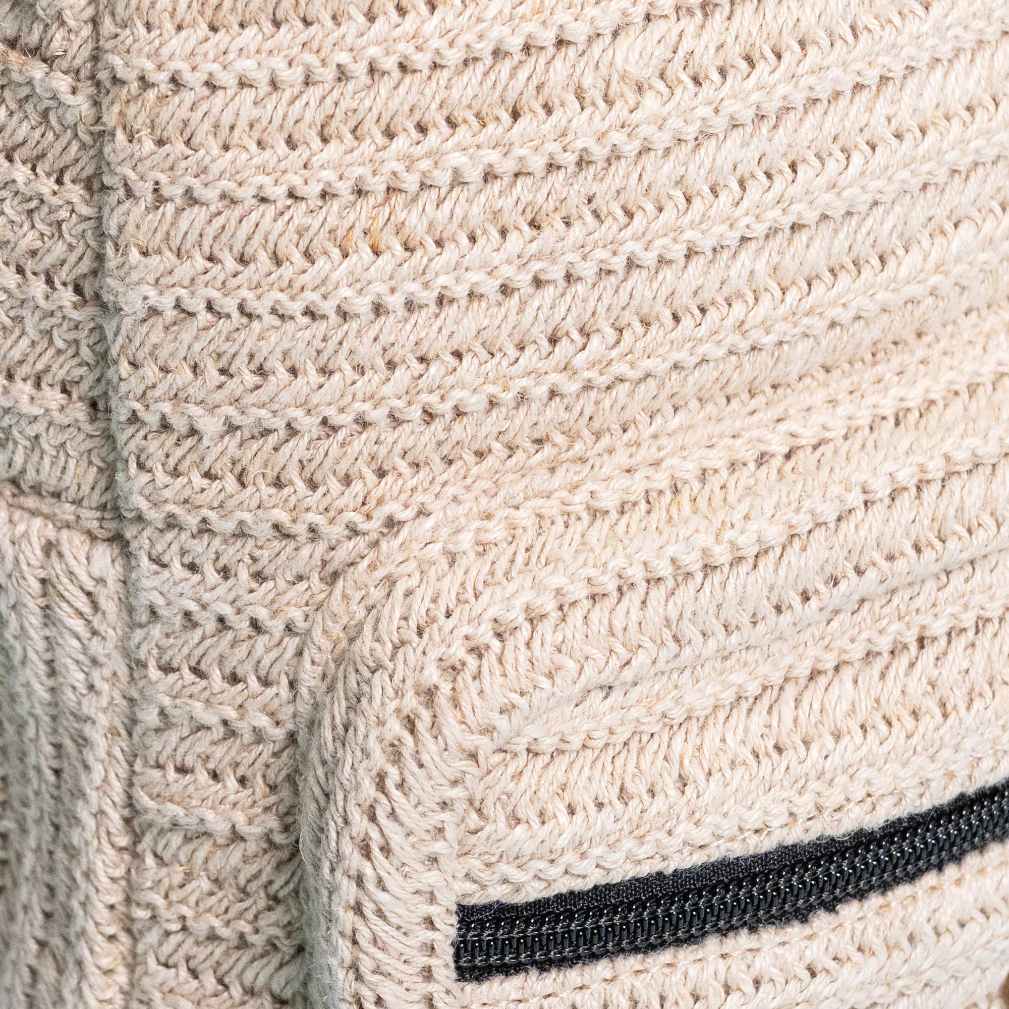 Organic linen mini backpack with beautifully detailed crocheting on the outside and organic woven linen fabric on the inside - leather-free, vegan, and features 100% organic hemp webbing straps (adjustable from 18" to 32"). Premium YKK zippers made with biodegradable components make this bag 99.5% biodegradable. Hypoallergenic. Hand-crafted. Hemp trims,...