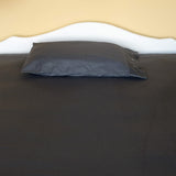 You want it darker (thanks Leonard Cohen). Our Midnight Zen Collection of premium eco-friendly organic cotton bed sheets that are timelessly elegant yet fully organic, free of toxins & eco-friendly. They create a meditative zen look in our eco bedroom. The fine dark grey on darker grey stripes of our organic cotton bed sheets complement a stately inner sanctum that is the bedroom. You can use the Midnight Moonlight organic cotton sheets on their own set or mix and match with our Platinum Zen organic cotton sheets (see photos). Platinum on grey fine stripe jacquard pattern; high-density 340-count sateen weave. Luscious, smooth, and silky organic cotton bed sheets. 100% organic cotton yarns.