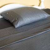 Many customers have told us they want it darker (thanks Leonard Cohen), so we created our Midnight Zen Collection of eco-friendly organic cotton sheets. Strong yet beautifully soft & smooth 100% organic cotton jacquard sheets that are grey on darker grey stripes. The stately effect of these organic cotton sheets are perfect for both casual and formal bed-setting. You can even mix and match the Platinum Zen organic cotton sheets with our Midnight Moon organic cotton jacquard sheets for a meditative zen effect (see photos). High-density 340-count sateen weave. Made at the Rawganique Atelier in Europe for true purity. Sweatshop-free. No heavy metals or harsh chemicals used. No formaldehyde, no dioxin.