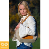 Cybil Women's Vegan Hemp Purse from organic European hemp. Handmade at the Rawganique Atelier in Europe. Sweatshop-free.The Cybil Hemp Purse measures 9.5" wide at the base, 11" wide at the top, and 8" tall. There's a zippered pocket in front and a full snapped compartment in back. See drawing in the Image Gallery for more details.