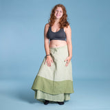 The Habanera Hemp Skirt is flattering in all the right places and elegantly drapes and flows.The two-layer styling allows folds to drape with simple elegance. The organic hemp knit and organic hemp woven fabric breathe exceedingly well, for full all-day wearing comfort.
