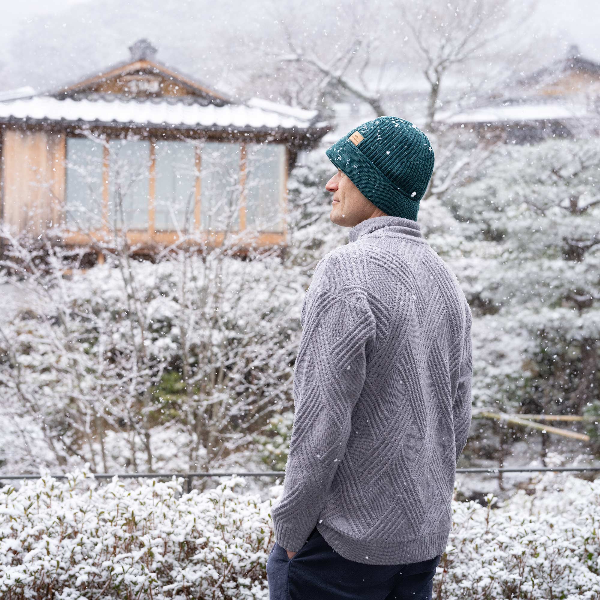 100% organic merino wool knit hat - the purest there is - no synthetics, 100% biodegradable! Cozy & pure 100% certified organic wool knit beanie hat / toque, handmade in-house one piece at a time at Rawganique Atelier in Europe for true purity. This super soft and warm organic wool beanie for men & women comes in organic, biodegradable colors Lichen Green, Mocha Latte, Shadow Gray. We source our 100% certified organic merino wool yarns from Italy and France. Our 100% organic merino wool winter beanie hat contains no elastic, no latex, no acrylic, no polyamide, no polyester, and no synthetic yarns. Even the label is made of European cork (plastic-free!).